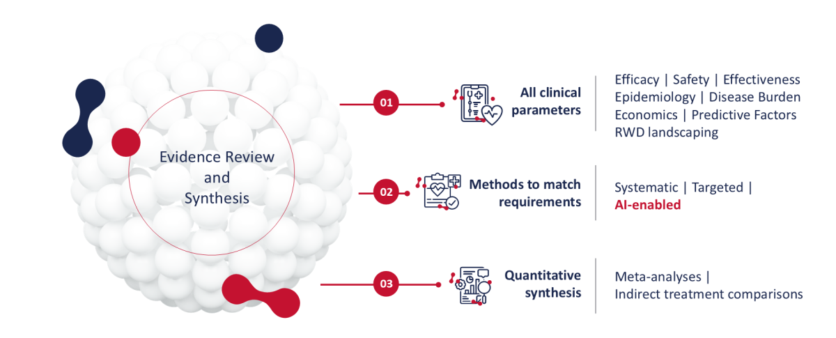 Our literature reviews go well beyond data reporting – we also deliver critical insights, which allow results to be translated into decisions. We have a range of higher-order data transformations, such as evidence dashboards and quantitative synthesis, that allow our clients to get the most value from their data. Scroll down to explore our enhanced services.