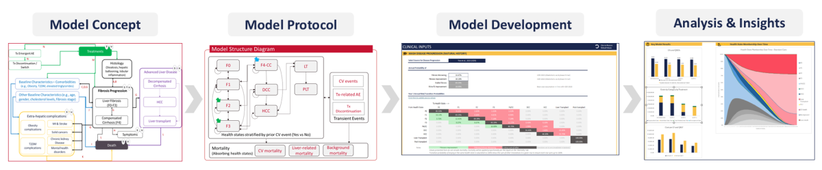 Beyond health economic models, our team works on other types of decision models such as epidemiology forecast models, patient journeys, and disease progression models.